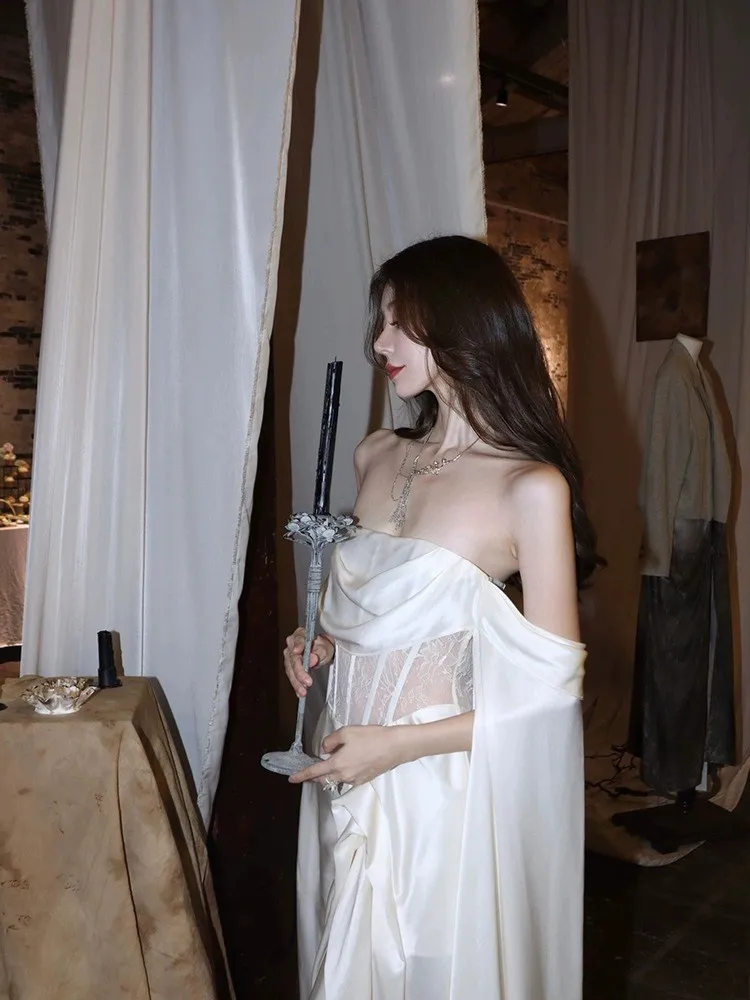 Adult Ceremony Dress Light Luxury Toast White Satin Prom Dress