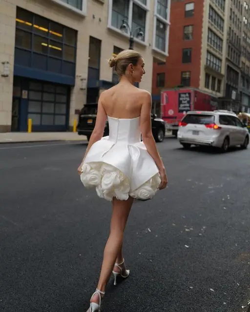 Beautiful 3D Flower Short Women Holiday Party Dresses Strapless Floral Mini Maxi Dress Bridal Dress