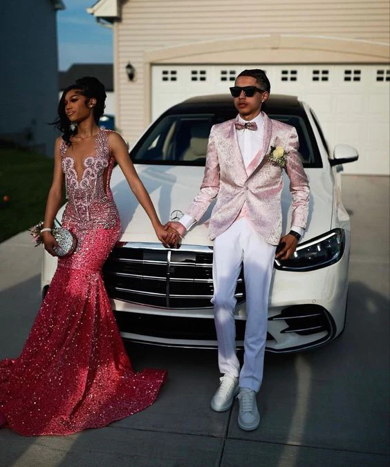 Beautiful Pink Sequin Beaded Mermaid Evening Dress Prom Dress