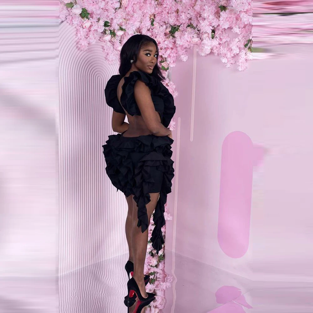 Black Mini Cocktail Dresses Sexy Deep V Neck Cutaway Sides Ruffles Mermaid Party Dresses Yong Girls Prom Birthday Gowns