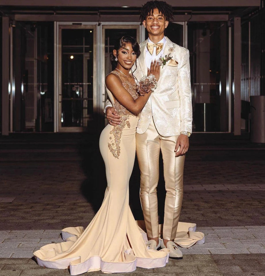 Champagne Satin Embroidery Evening Dresses Mermaid Luxury Beaded Sequined Ruffled Hem Formal Party Prom Gowns Vestido De Fiesta