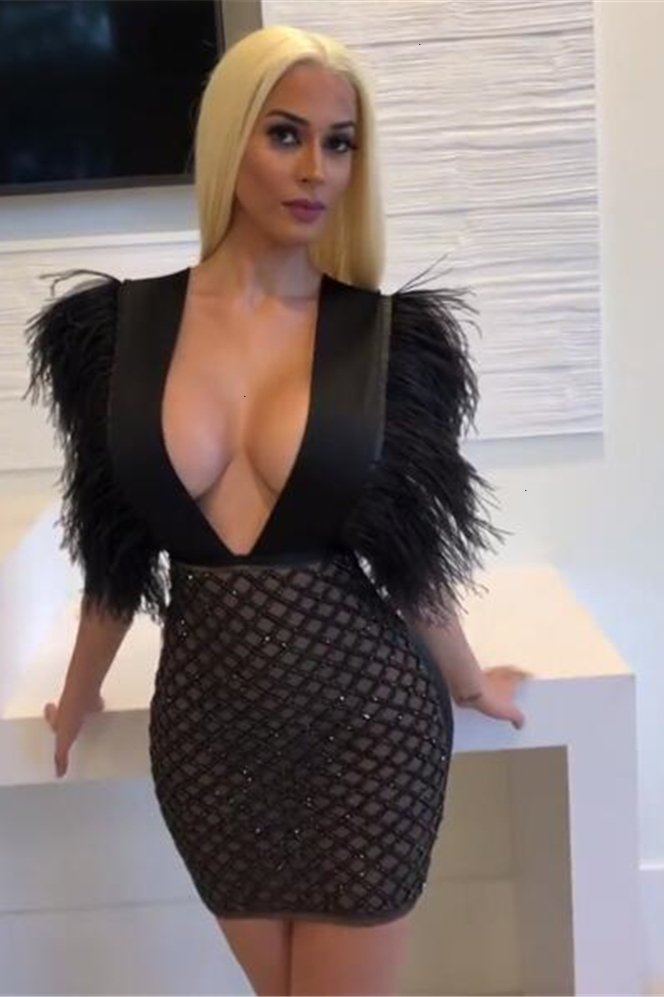 Chic Deep V-Neck Sequins Mini Club Dress