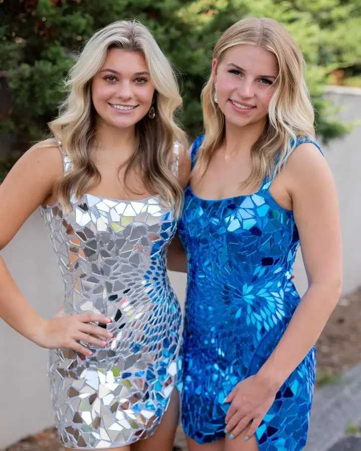 Cut Glass Mirror Homecoming Dress 2k24 Square NYE Hoco Drama Graduation Formal Cocktail Party Wedding Holiday Club Night Gown