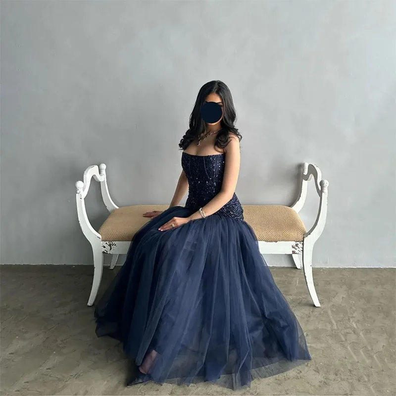 Elegant Strapless Prom Dresses A-Line Floor-Length Sequins Beads Sleeveless Formal Occasion Dresses