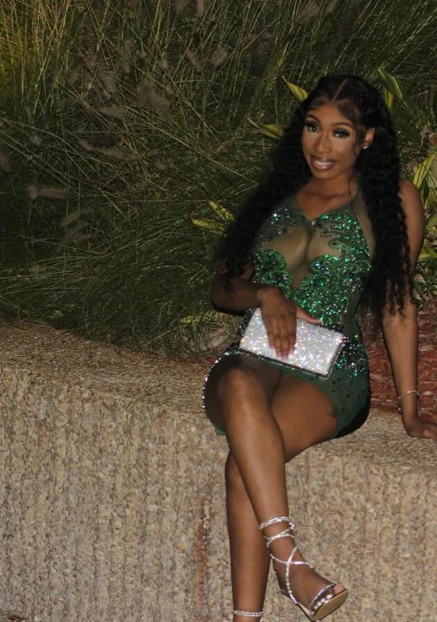 Emerald Green Mini Evening Cocktail Dresses Sheer Mesh Black Girl Diamond Crystal Birthday Party Gown vestidos de 15años