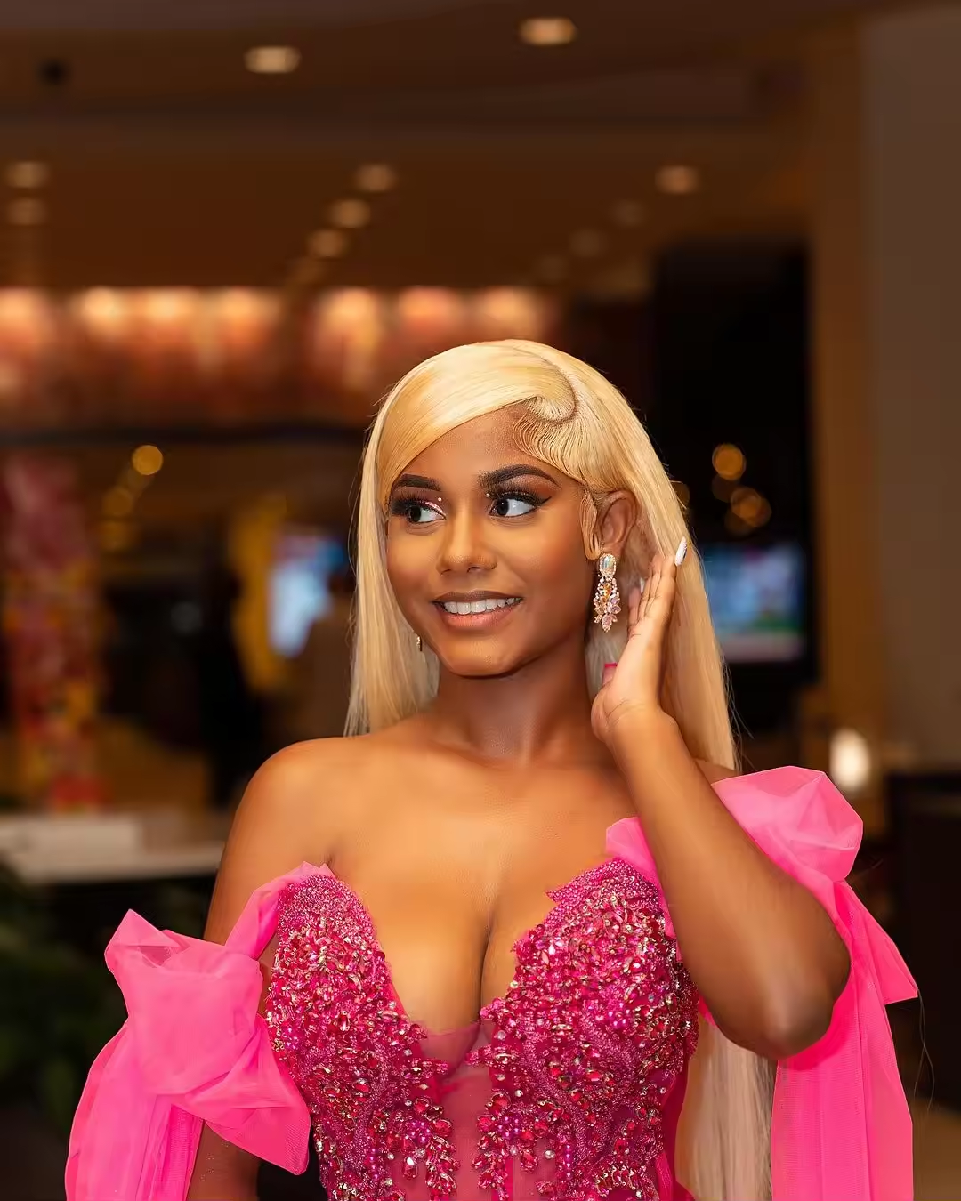 Formal Pink Beaded Long Mermaid Prom Dress For Black Girl Crystals Tulle Backless Evening Dresses Birthday Party Gowns