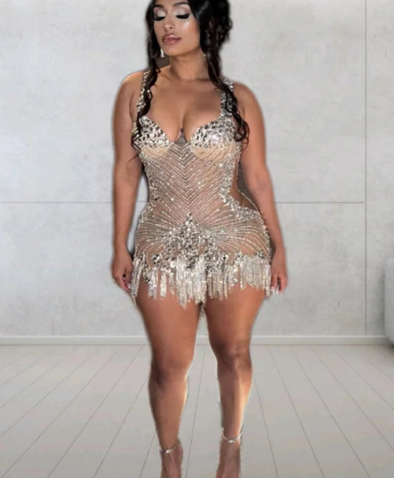 Giltter Rhinestone Prom Dresses Sequin Beading Black Girls Party Gowns Crystal Tassel Birthday Dress Homecoming Dress