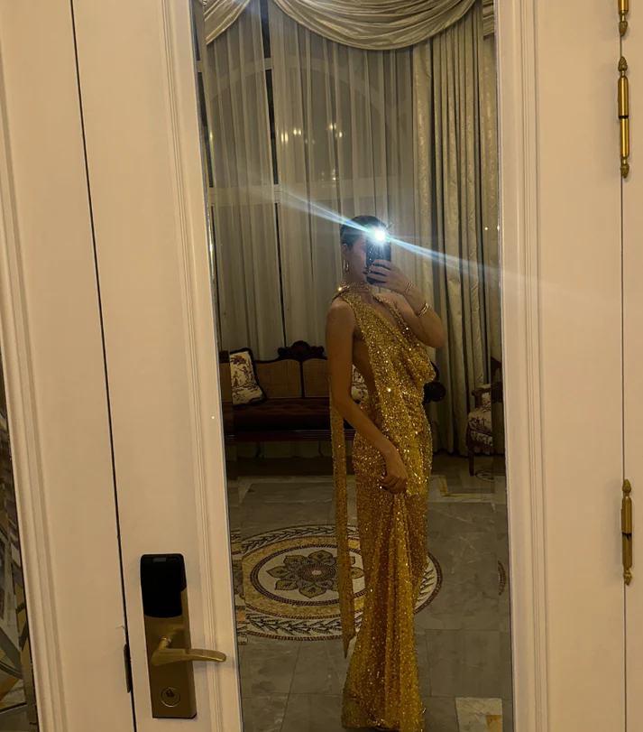 Golden Sheath V Neck Sequin Long Prom Dress Birthday Dress Evening Dress