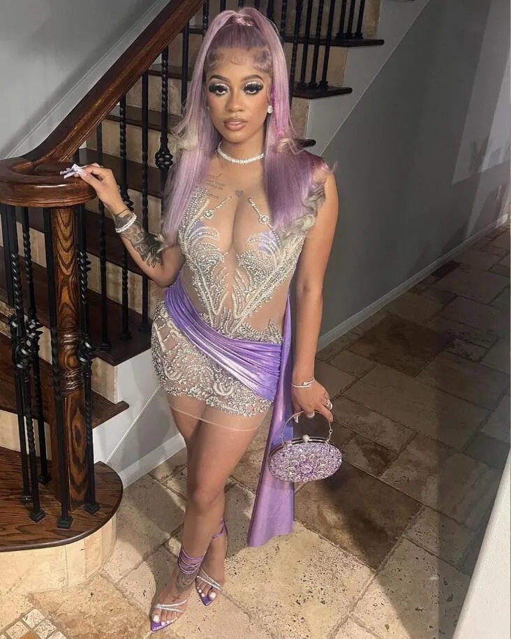Lilac Purple Mini Evening Cocktail Dresses for Women Sparkly Diamond Crystal Black Girl Birthday Gown vestidos de fiesta