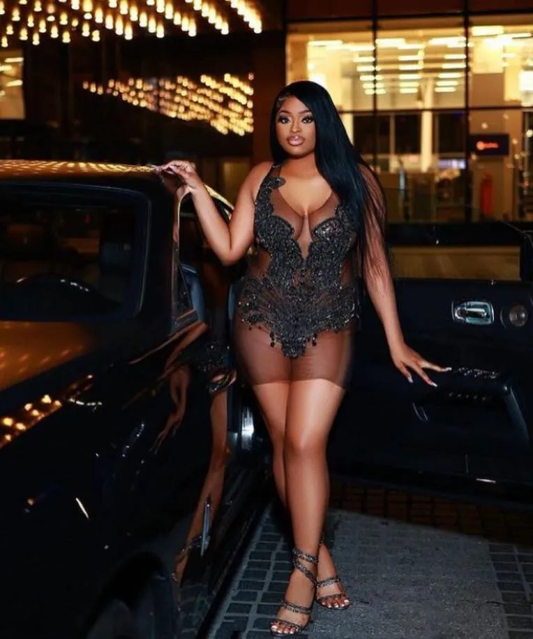 Little Black Dress Sparkly Mini Evening Cocktail Dresses for Black Girl Luxury Diamond Crystal See Through Birthday Gala Gown