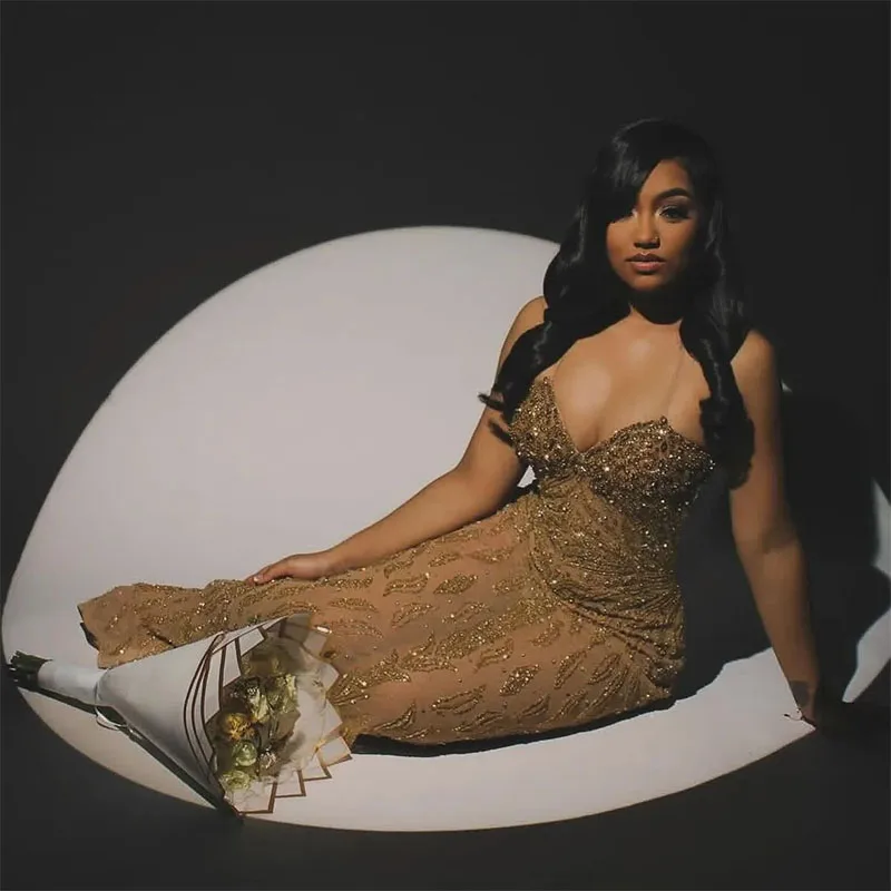 Luxury Gold Evening Dress Beads Sequined Backless Illusion Sexy Floor-Length Birthday Party Prom Dresses Custom Made