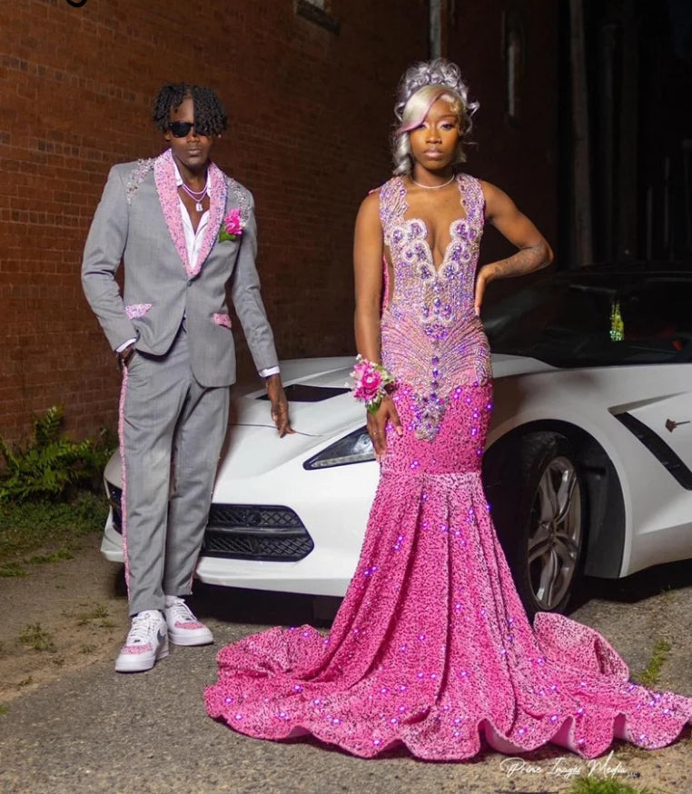 New Arrival Pink Prom Dress For Black Girls Shiny Beaded Crystal Rhinestones Diamonds Sequing Gown Evening Gown Birthday Party