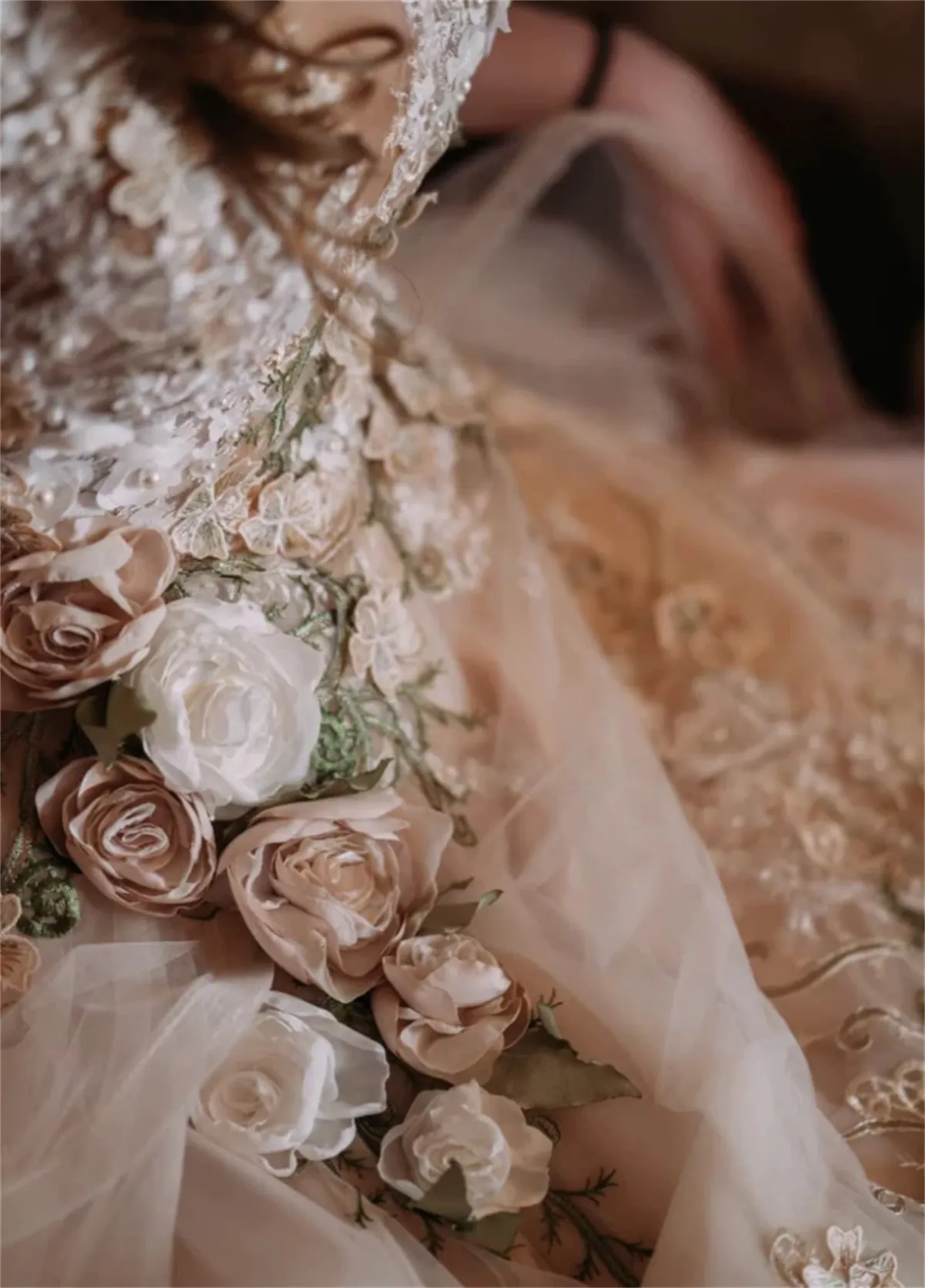 Outdoor 3d Floral Wedding Dress With Deep V Neck Sleeveless Back Light Pink Layered Tulle Trailing Open Elegant Evening Dress