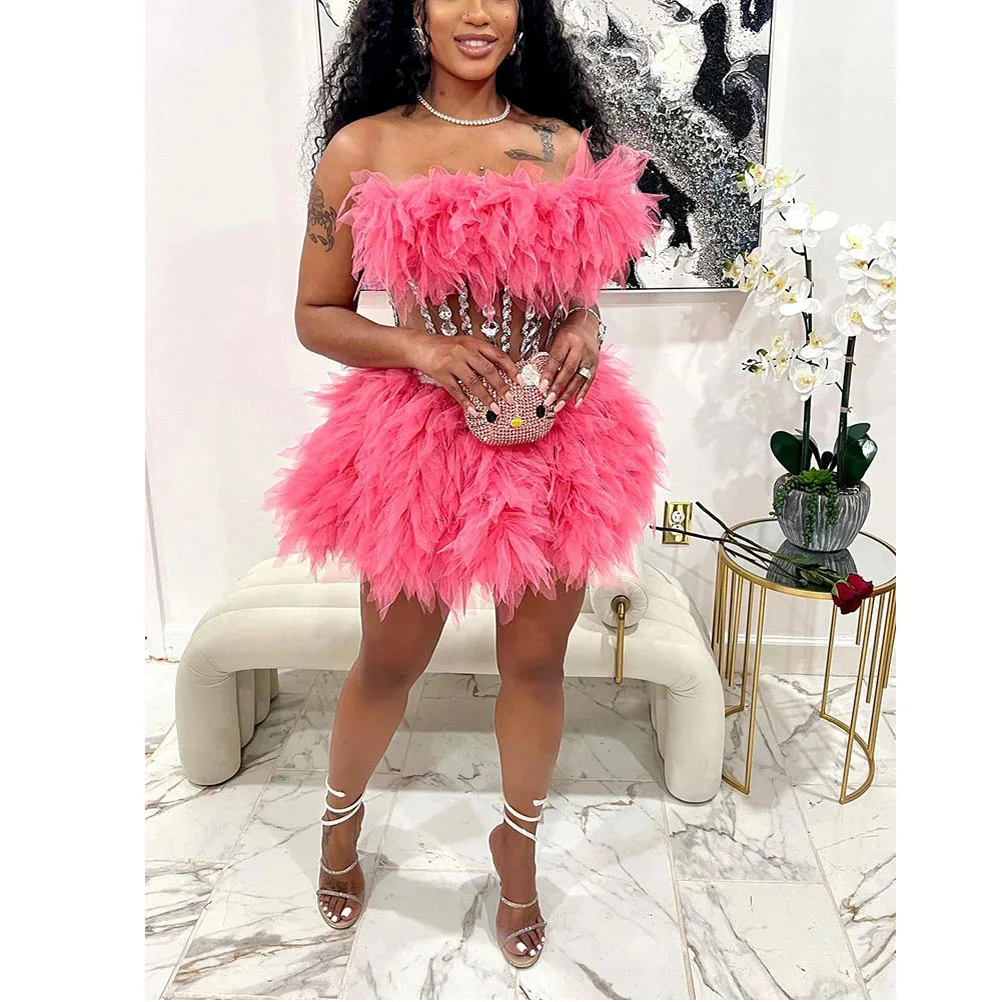 Pretty Fuchsia Bling Bling Rhinestone Cockail Dresses Ruched Tutu Tulle Beaded Short Women Maxi Dresses To Party