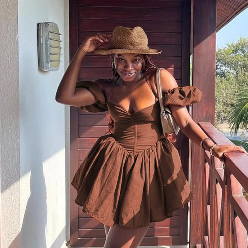 Puff Sleeve Mini Dress Lady Sexy Party Bodycon Evening Dresses Women Summer Clothes Elegant Luxury Birthday Club Dresses