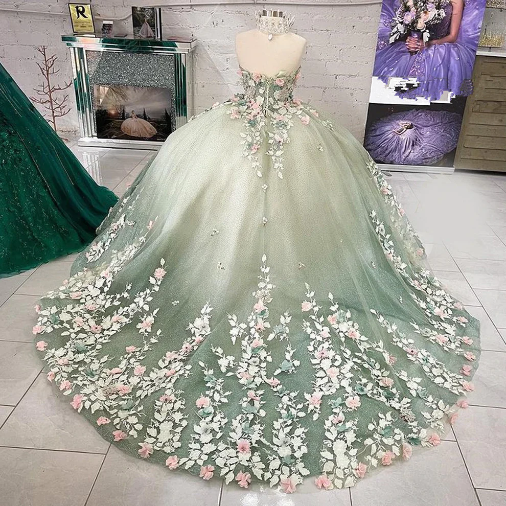 Quinceanera Dresses Ball Gown Lace Ball Gown Sweet 16 Dress With Flowers