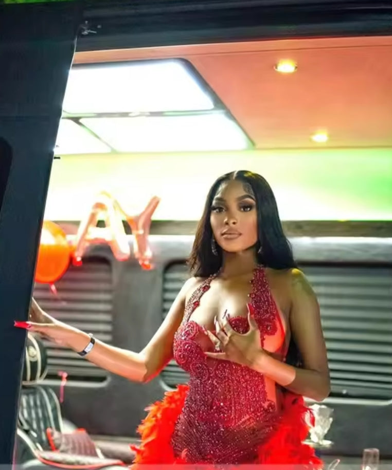 Red Halter Short Prom Dresses For Black Girl Bead Crystal Birthday Luxury Dress Feather Mini Cocktail Homecoming Customized