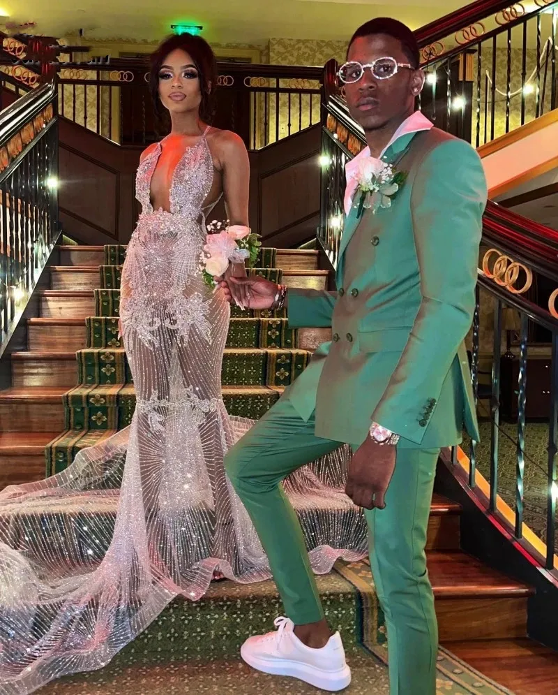 See Through Mermaid Prom Dress For Women Glam Sequin Black Girls Birthday Party Dresses Long Evening Gowns