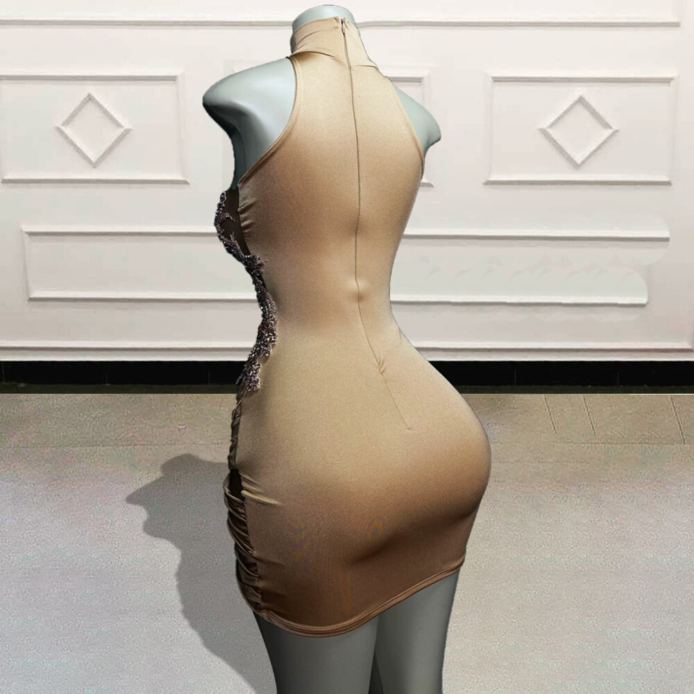 Sexy Black Girls See Through Short Prom Dresses Glitter Beaded Crystal Women Mini Cocktail Gowns for Birthday Party