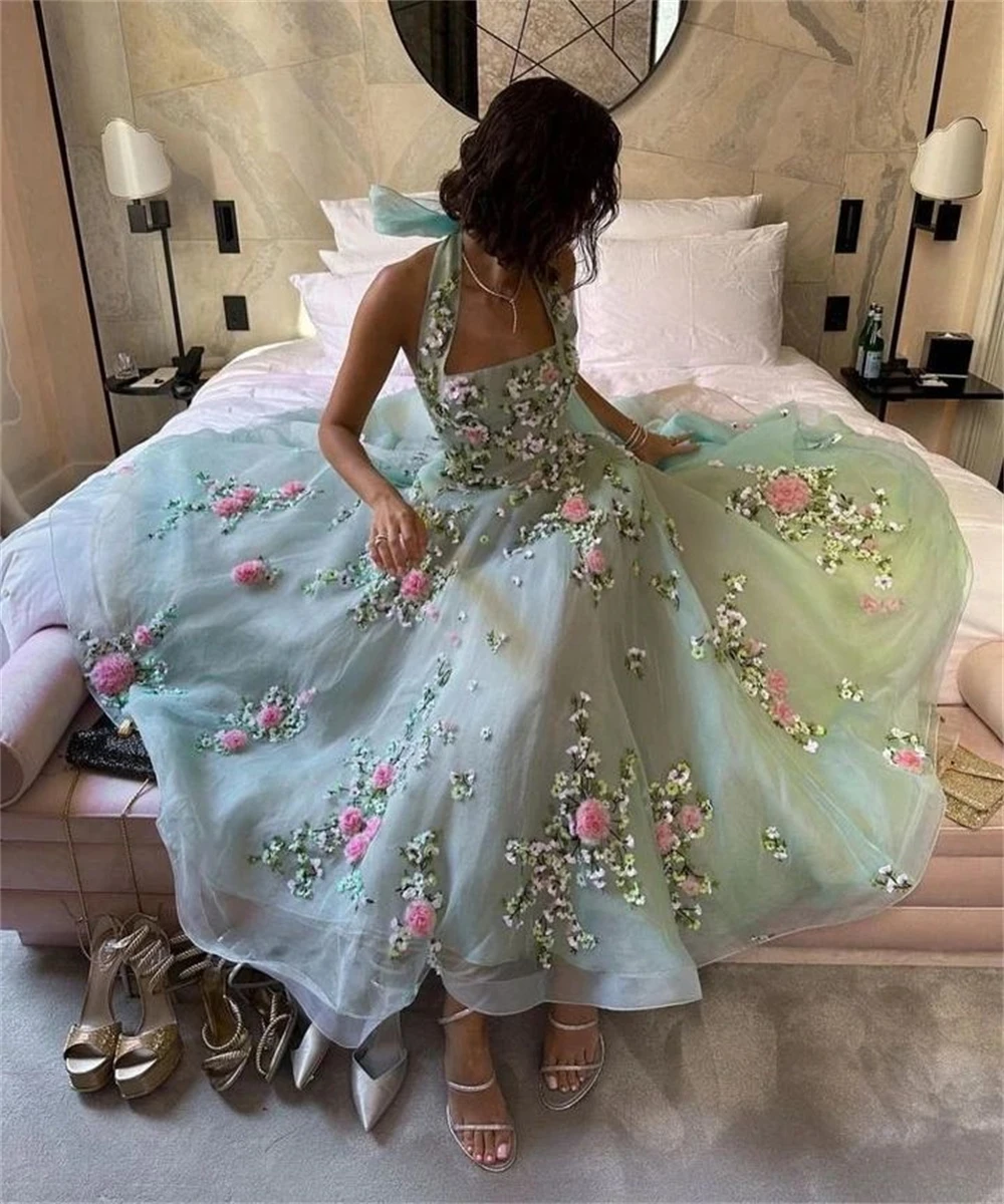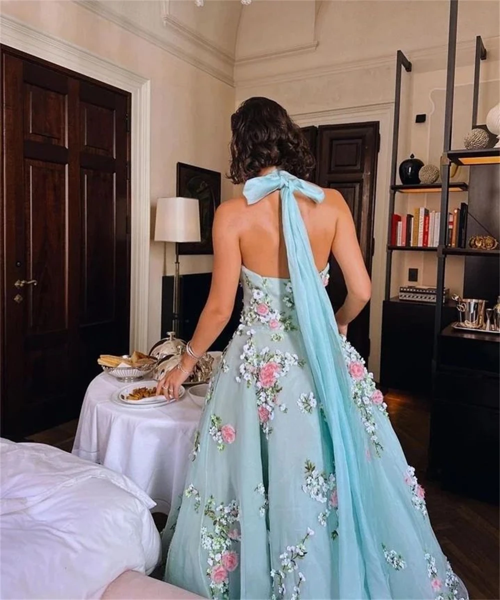Sexy Halter Ball gown Cocktail Evening Flowers Fold Soutache Chiffon Prom Dresses luxury evening dresses for women