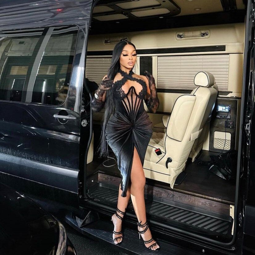 Sexy Maxi Dresses Women To Party With Gloves Short Halter Front Split Velvet Pleated Luxury Applique Prom Gowns