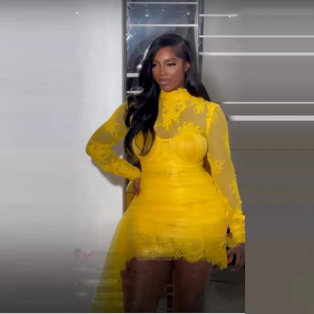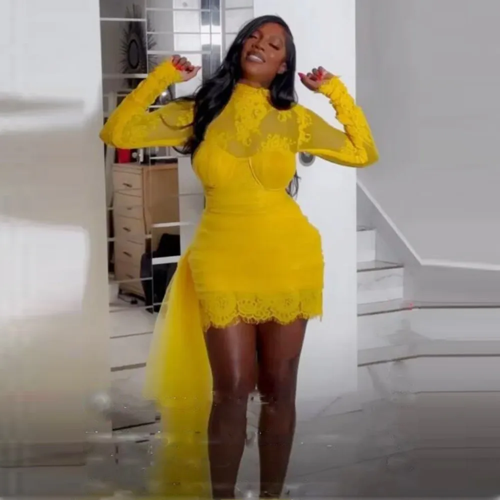 Sexy Mini Prom Dresses High Neck Long Sleeves vestidos de noche Sheath Women Party Dress With Side Train Aso Ebi Evening Gowns