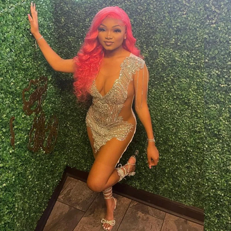 Sexy See Through Prom Dresses Beading Fitted Women Birthday Gowns Vestidos De Gala Para Graduación Cocktail Party Dress
