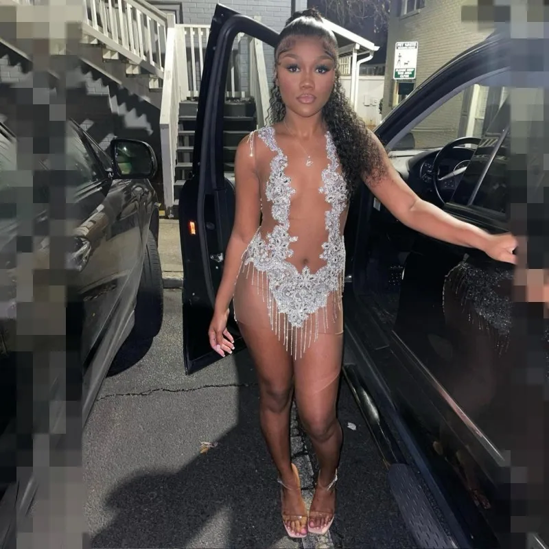 Sexy See Through Prom Dresses Sheer Neck Applique Beading Mini Party Gowns Women Birthday Outfit Vestidos De Gala