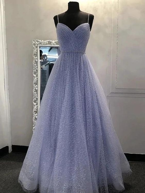 Shiny A Line V Neck Purple Lace Prom Dresses, A Line V Neck Purple Lace Formal Evening Dresses