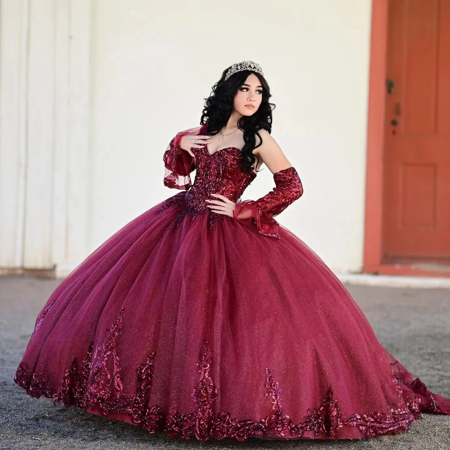 Shiny Quinceaniera Dresses Sequined Beaded Appliques Strapless Princess Ball Gown Birthday Party Prom Dress vestidos de 15 años