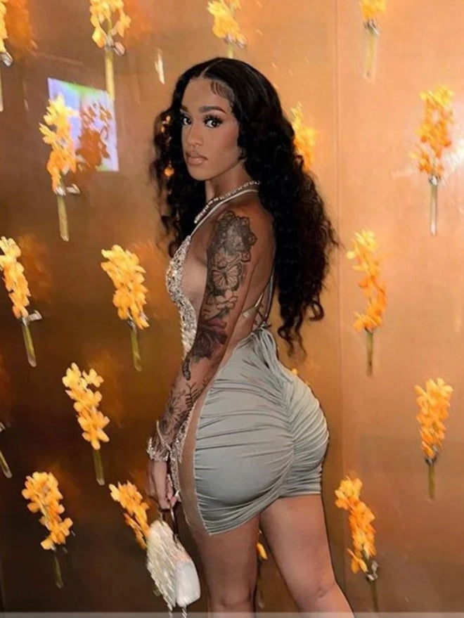 Silver Beaded Crystal Short Prom Dresses Black Girls Sequined Birthday Party Mermaid Formal Gowns Mini Cocktail Robe De Bal