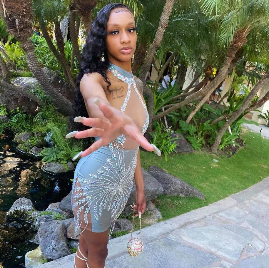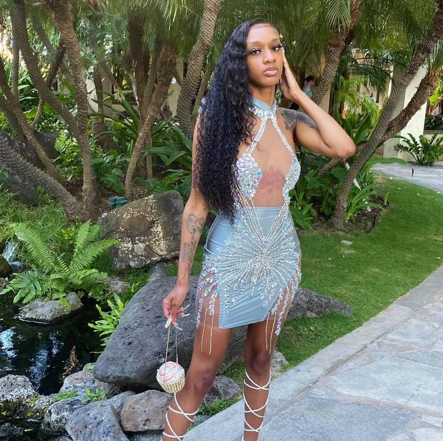 Silver Grey Short Evening Cocktail Dress Luxury Sparkly Diamond Crystal Backless Birthday Gown Black Girl vestidos de ceremonia