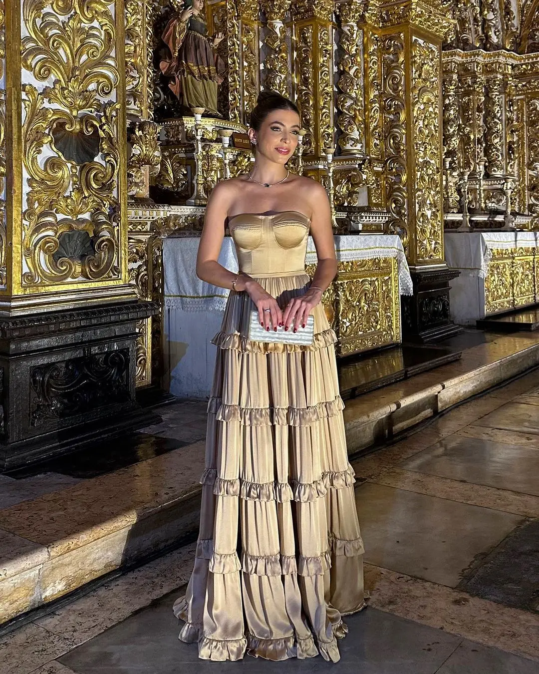Simple Strapless Sleeveless Prom Dresses A-Line Ruffles Tiered Floor-Length Elegant Formal Occasion Party Gowns