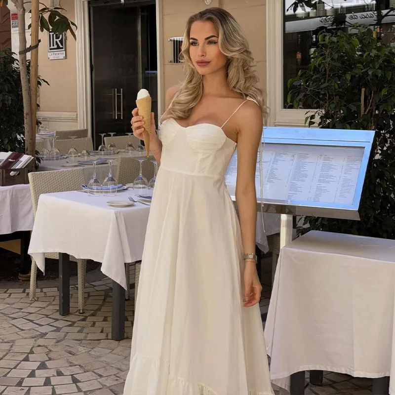 Solid color suspendersWomen's New Fashion Layered Decorated Poplin Dress Retro Backless