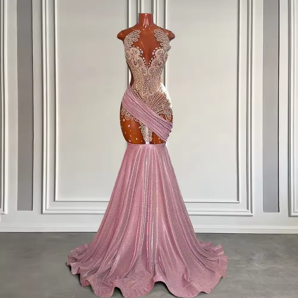 Sparkly Light Lilac Shiny Mermaid Prom Dresses 2025 Luxury Rhinestone Beads Long Birthday Party Dress Black Girls Customized