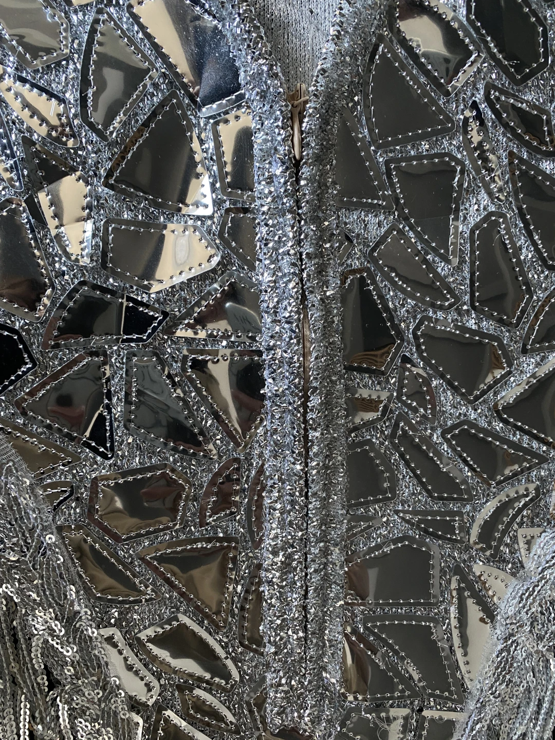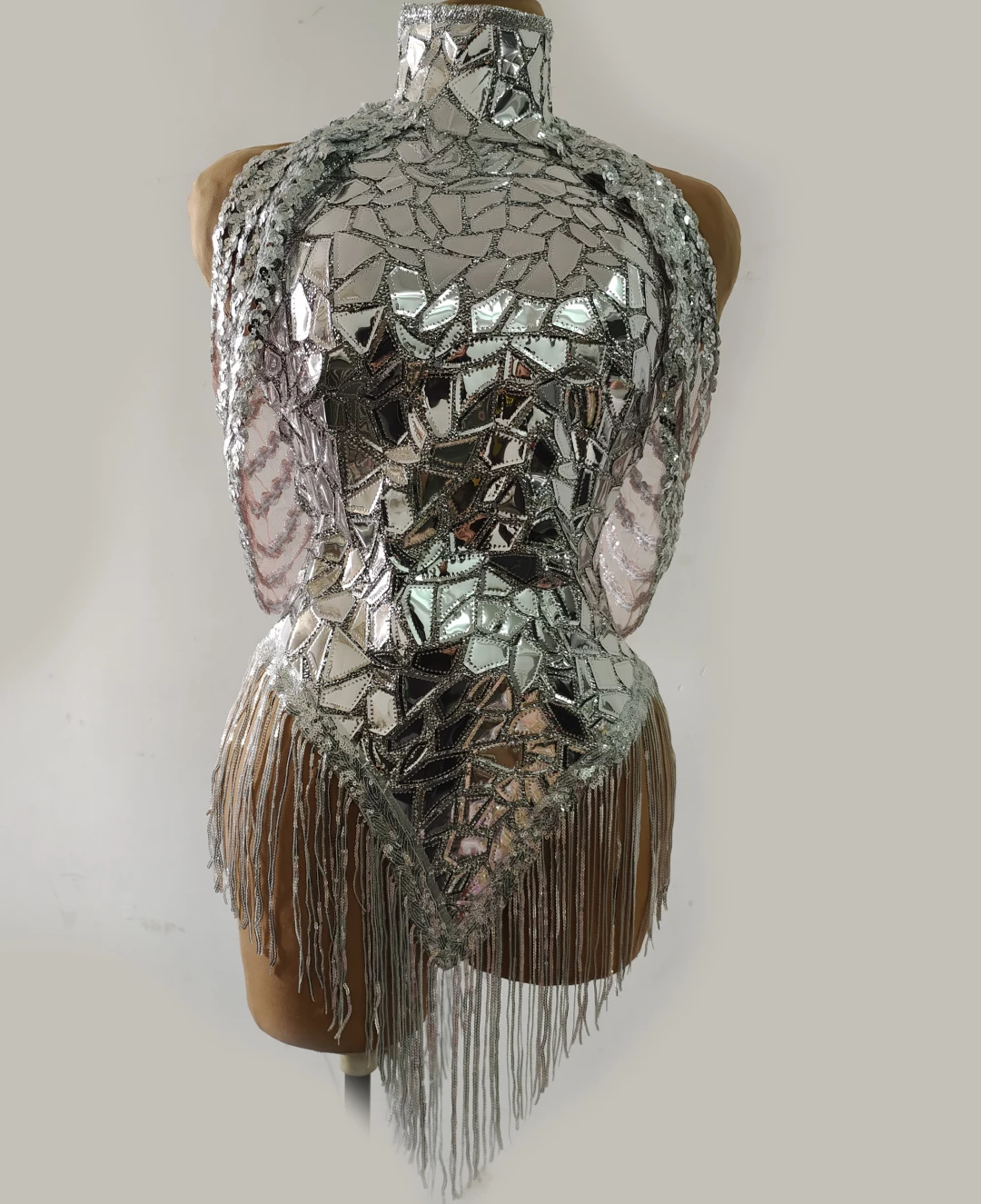 Sparkly Silver Sequins Dresses for Women Sexy Bling Dance Fringes Costume Birthday Party Celebrate Outfit Singer Stage Wear