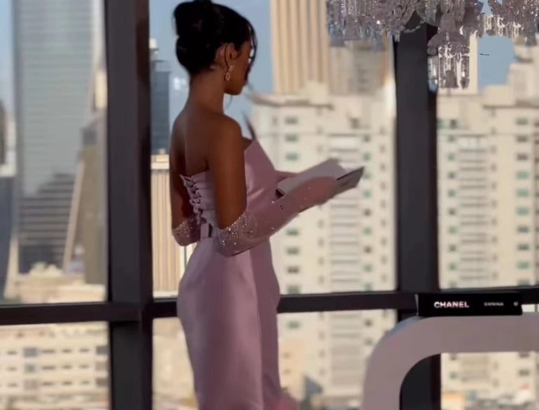 Strapless Crystal Prom Dresses Mermaid Ruffles Side Split Oversleeves Elegant Evening Dresses New Design Formal Party Gown