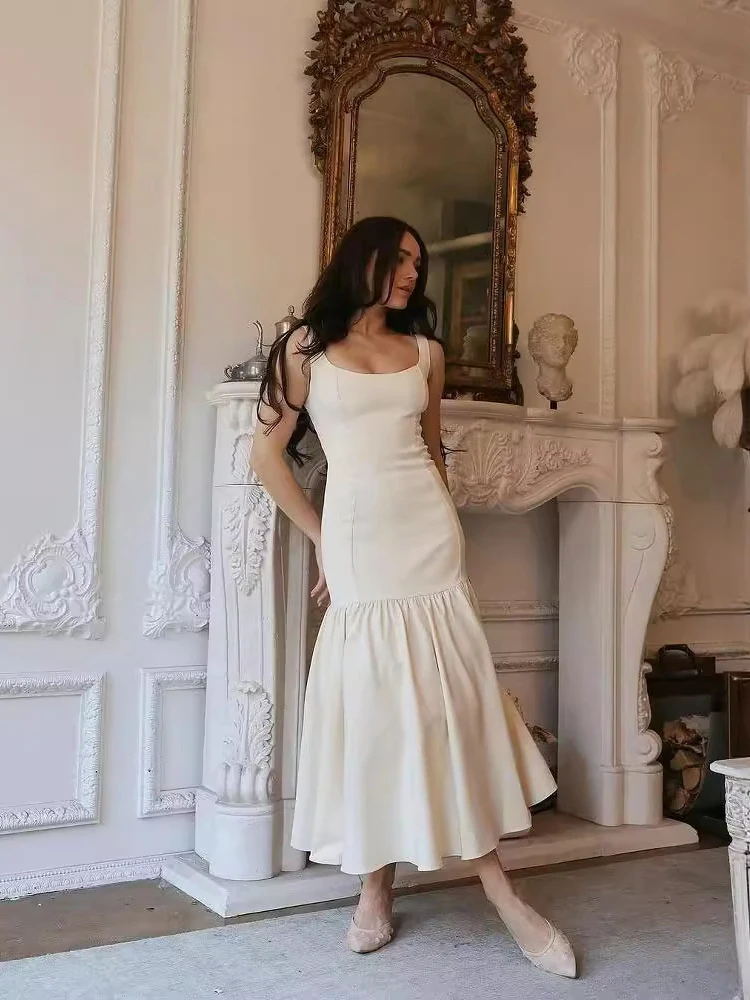 Vintage Summer Bodycon Long Dress Women Fashion Elegant Sleeveless Pleated Midi Dresses Streetwear Female Party Evening Robes