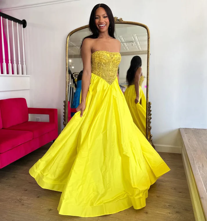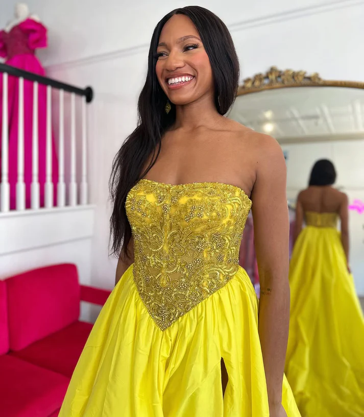 Women's Satin Beaded Prom Dresses Long Sweetheart Corset Party Dresses with Slit